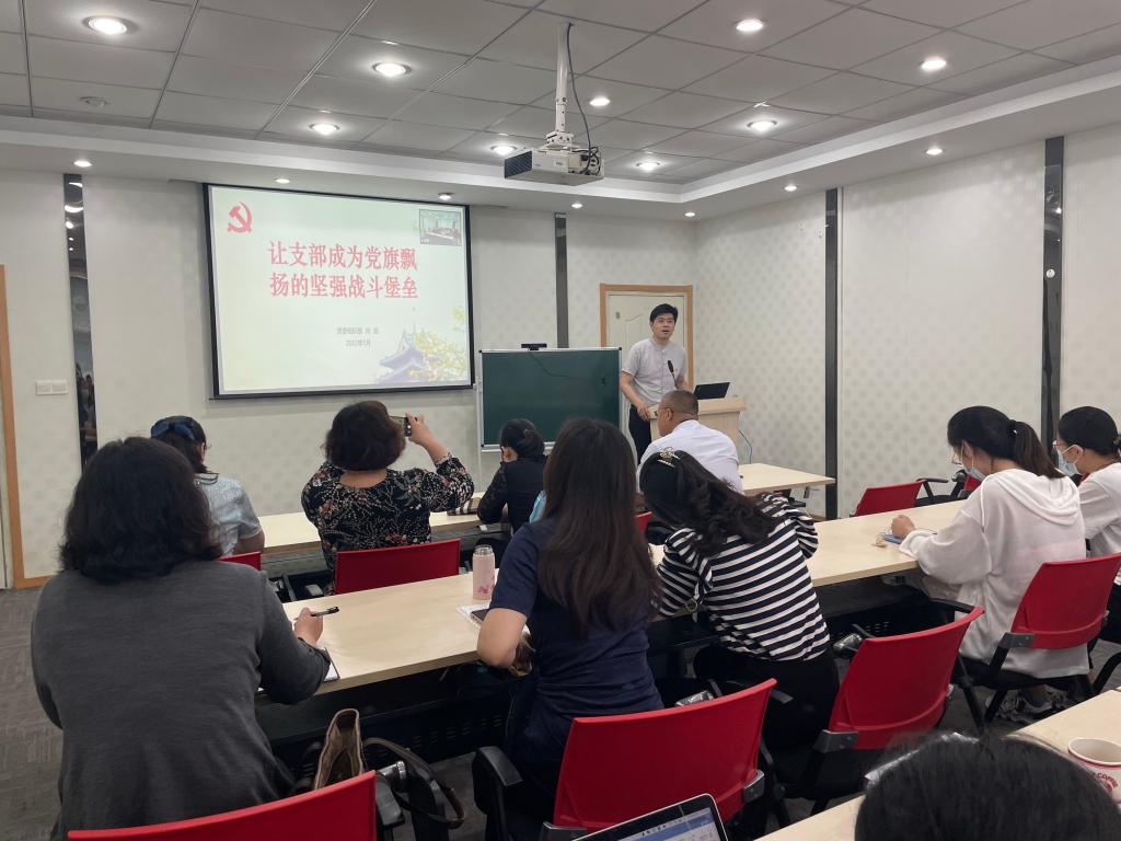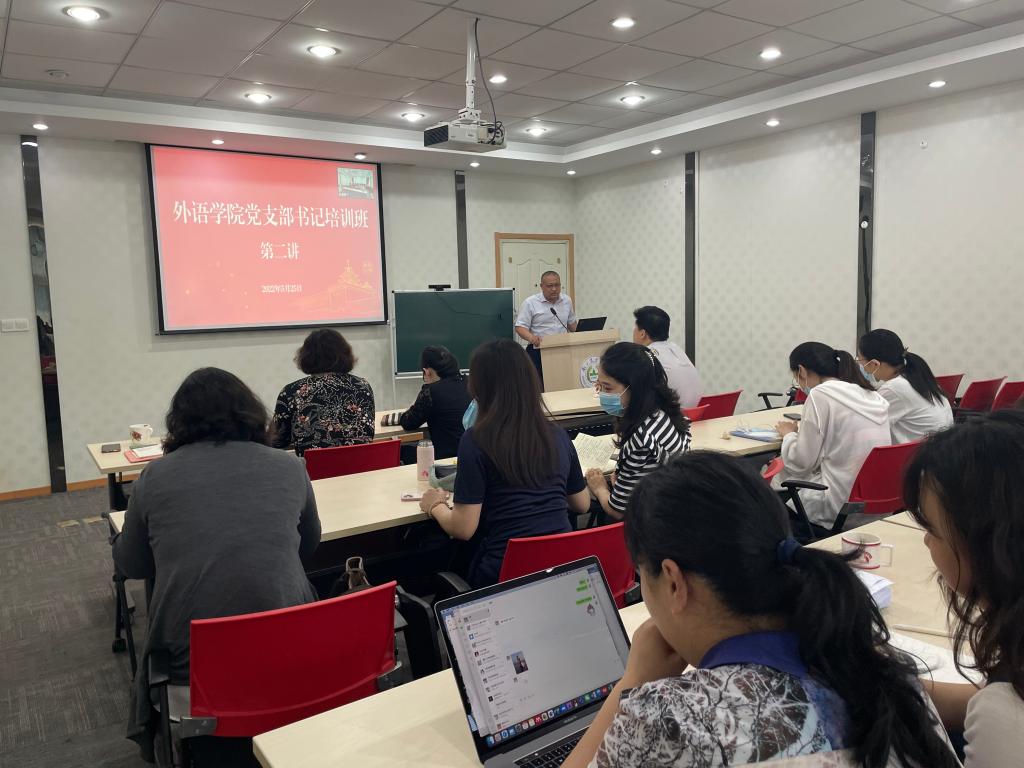 5月25日下午,冰球官网在教学楼A310会议室举办了党支部书记培训班的第二期党务工作培训,校党委组织部正科级组织员何旭同志为冰球官网师生作了题为“让支部成为党旗飘扬的坚强战斗堡垒”专题讲座。本次培训采取线上线下相结合的方式,院党委书记朱筱玉、副书记韩立新,院党委委员王凤英、王菊芳,各党支部书记、委员,党务秘书等30多人参加了培训,培训会议由韩立新主持。