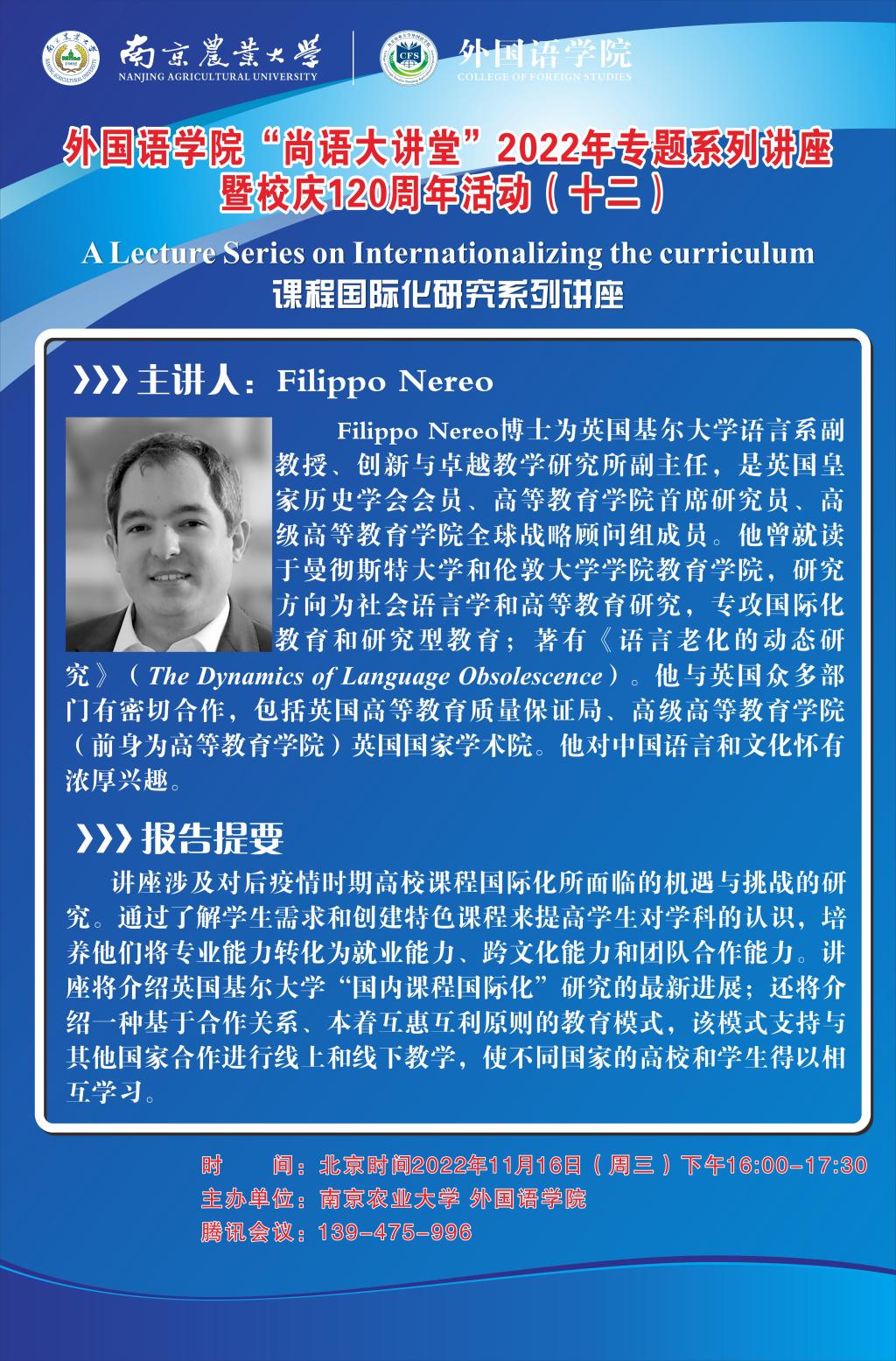 讲座题目:A Lecture Series on Internationalizing the curriculum课程国际化研究系列讲座