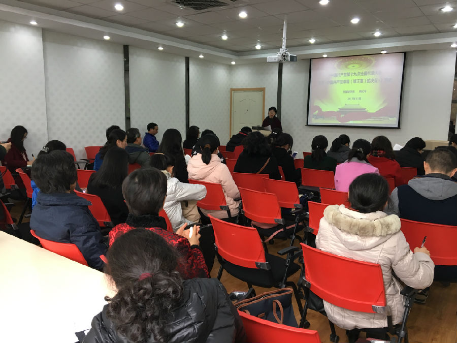 11月6日下午,mg冰球突破试玩党委在教学楼A310召开了全院教职工党员大会。院党委书记韩纪琴给全体教职工党员作了题为“学习党章,遵循党章,做合格党员”的专题教育党课。