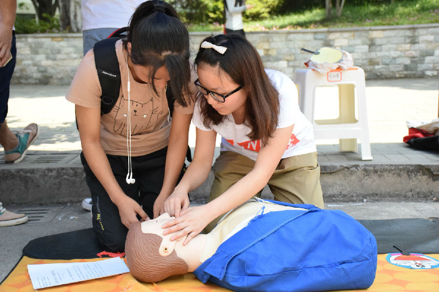 6月16日中午,校长办公室、科学研究院、学生工作处、保卫处、后勤集团、校医院、mg冰球突破试玩、校红会急救队以及下马坊警务站、孝陵卫派出所等多部门在玉兰路联合开展了“6.16”安全生产主体责任宣传咨询日活动,现场发放安全知识手册、有奖问答、急救体验向师生传播安全理念。活动参与度高,师生反响热烈。