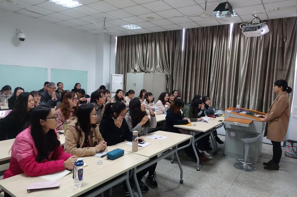在胡苑艳老师说明备课流程之后,三位参赛老师分别按照20分钟讲课、专家提问、10分钟说课、专家提问、评委专家点评的环节进行了个人呈现。庄晓敏老师流畅的语言、地道的英式发音,王妍老师引导学生时的循循善诱,霍雨佳老师纯正的语音和幽默风趣的教学风格给评委专家留下了深刻印象。评委专家分别对三位老师的讲课和说课作了精彩点评,一针见血地指出了她们教学环节中存在的问题,并提供了解决问题的思路和方向。