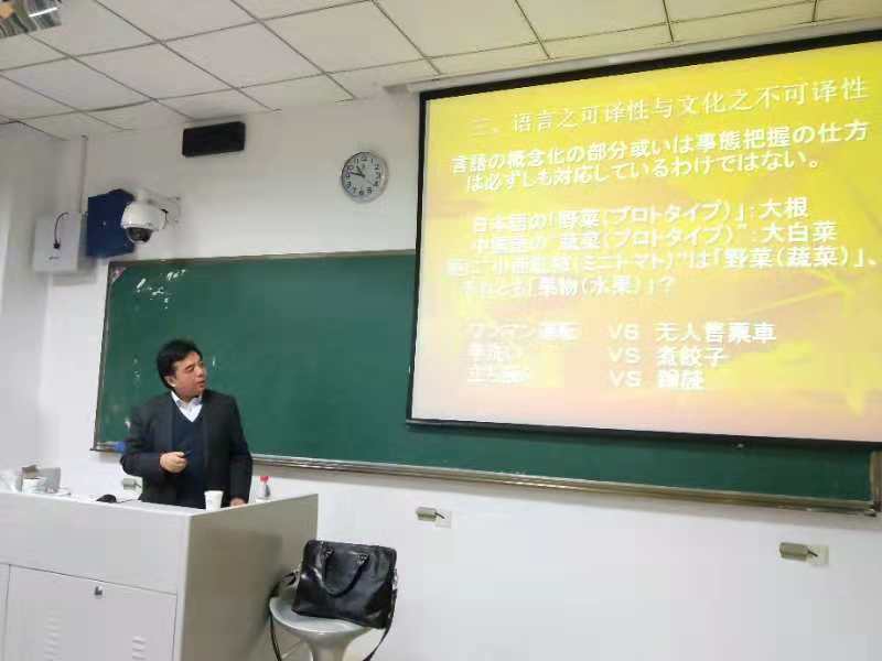 12月5日上午,北京外国语大学日语系教授,北京日本学研究中心主任、教授、博士生导师徐一平教授应mg冰球突破试玩之邀,做了题为“翻译标准与翻译实践——兼论语言之翻译与文化之翻译”的学术讲座。讲座由mg冰球突破试玩游衣明副院长主持。