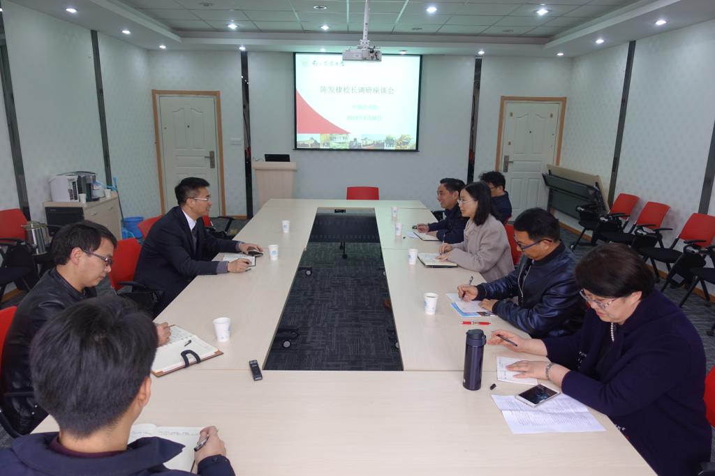 3月26日上午,校长陈发棣、人事处副处长白振田一行来冰球官网调研,主持工作副院长曹新宇、副院长游衣明、教师代表王银泉教授、李平教授和李红副教授出席了调研座谈会。