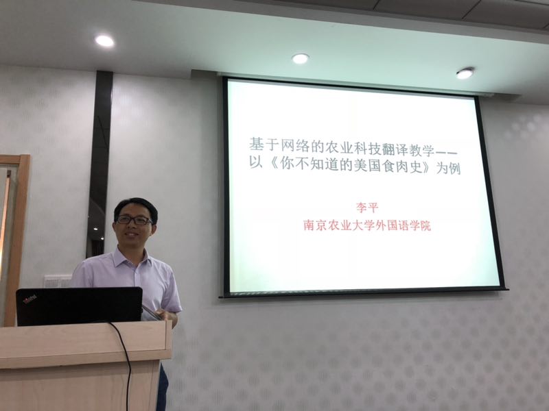 东南大学郭庆教授做了题为“翻译技术与译员核心能力框架体系研究”的主旨报告。他结合本校MTI翻译技术课程与MTI学生能力培养的经验,阐释了翻译技术相关的几个核心问题,特别是师资、经费、标准、规划等问题。mg冰球突破试玩李平教授的主旨报告题为“基于网络的农业科技翻译教学——以《你不知道的美国食肉史》为例”。他介绍了以本科生为教学对象的农业科技书籍翻译的教学经验,就《你不知道的美国食肉史》一书翻译过程中“Farmer’s Market”的术语翻译实例进行了详细探讨。他提出基于网络的翻译可以在质和量两方面提高科技翻译的概念正确性与翻译的总体效率。