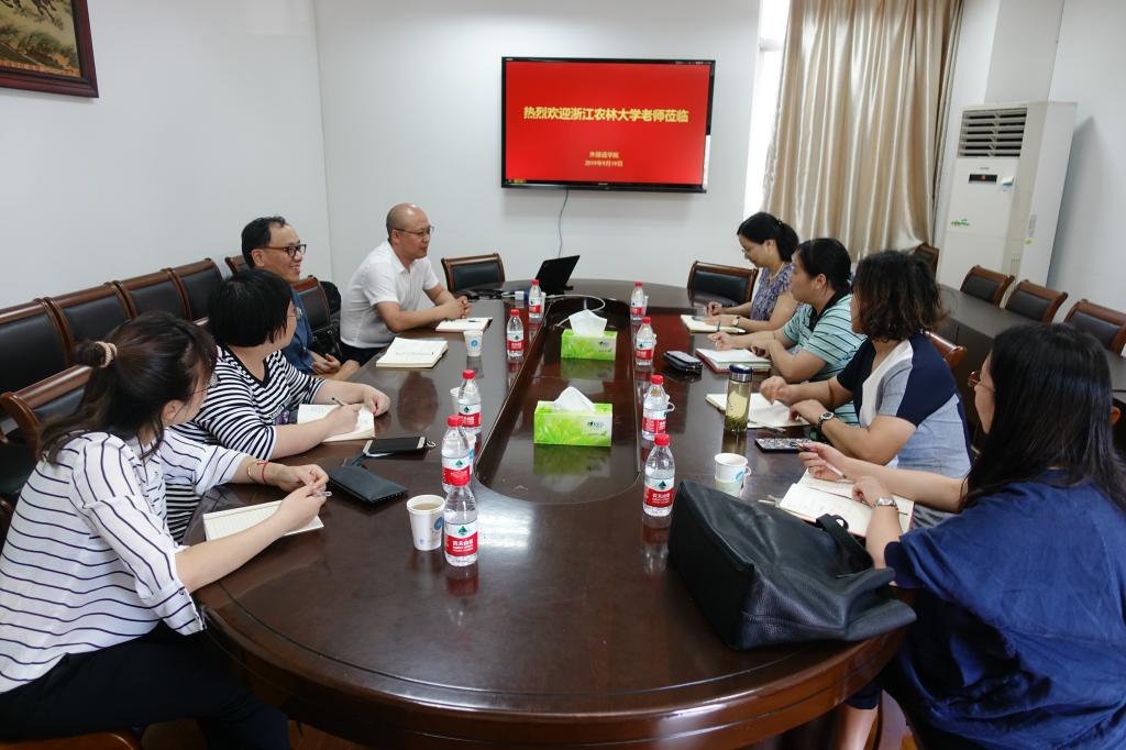 9月19日下午,浙江农林大学文法学院副院长吴俊龙、公共外语负责人陈声威等一行四人来访冰球官网,就人才培养、大学英语教学改革等内容进行交流。mg冰球突破试玩副院长(主持工作)曹新宇、公外部主任王菊芳、副主任张萍、王薇参加了此次座谈会。