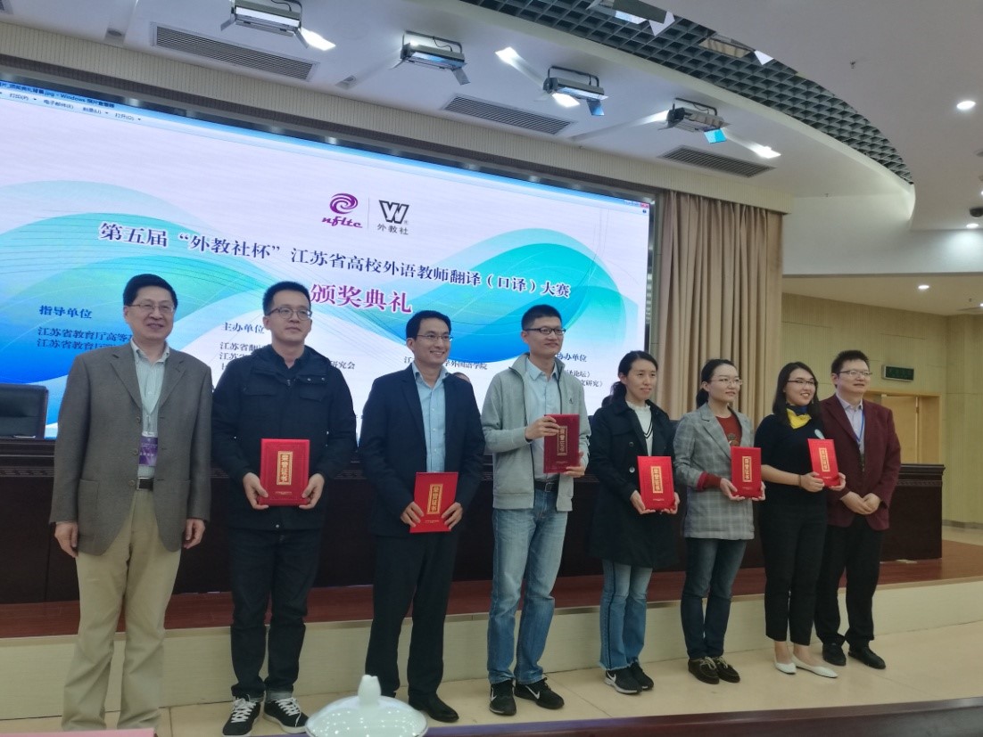 此次竞赛分本科组和高职组两组进行,竞赛也分为英译汉和汉译英两部分。霍雨佳老师参加的是本科组。10月18日下午举行英译汉预赛,成绩前8名进入第二天的汉译英决赛。因对竞赛题材不太熟悉,霍雨佳老师在预赛中发挥欠佳,但仍入围决赛。在第二天的决赛中,她发挥出色,获小组第一名,最终以总分第三名的成绩获得二等奖。 在颁奖典礼上,江苏海洋大学副校长舒小平教授首先致欢迎辞,然后江苏外语教学研究会会长李霄翔教授、上海外语教育出版社黄新炎博士代表主办单位分别致辞,对本次赛事的成功举办表示满意,对江苏海洋大学mg冰球突破试玩的大力支持表示感谢。江苏省翻译协会常务副会长、南京师范大学mg冰球突破试玩院长严志军教授对此次赛题进行了解读,而苏州大学mg冰球突破试玩副院长孟祥春教授对各参赛选手的表现进行了点评。冰球官网李平教授受邀担任评委。