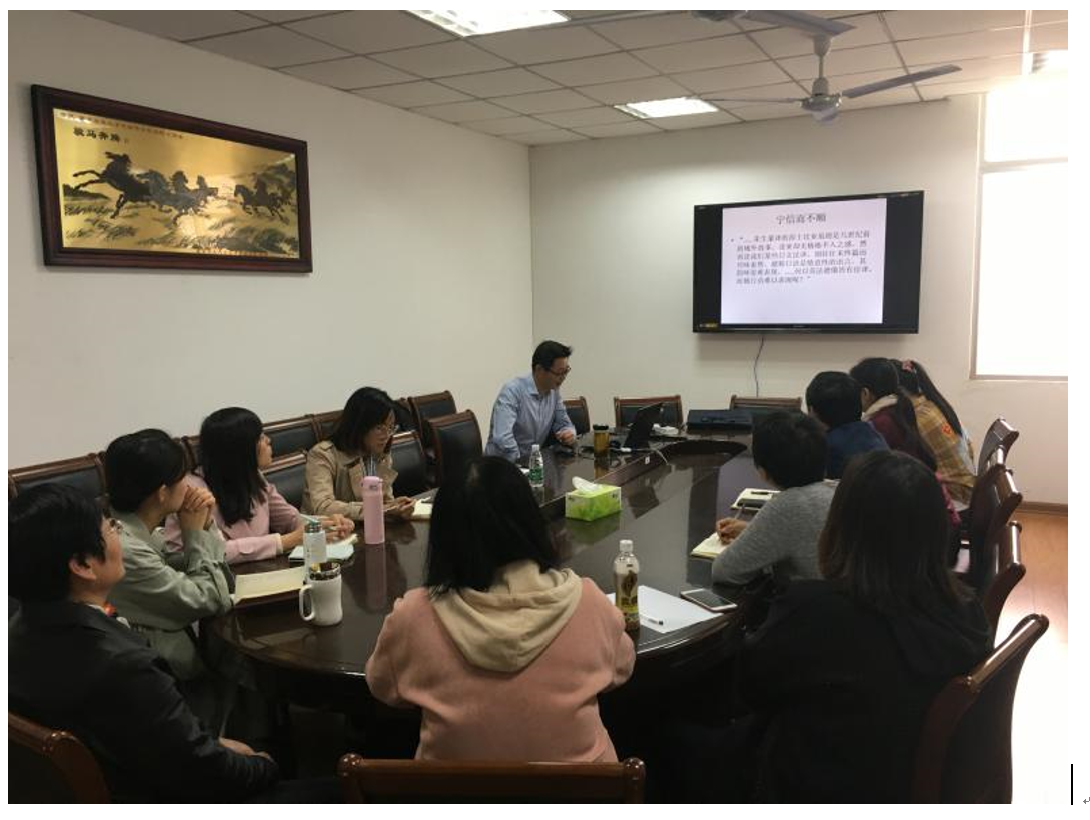 本学期的两次交流会,分别由武锐老师、石碧老师、胡志强老师、严桢老师这四位老师先后做了汇报。四位老师围绕翻译学进行了不同的主题交流。武锐老师作了题为《莫言作品在日译介及其启示》的报告,石碧老师详细介绍了日本推理小说在中国的翻译情况和传播情况。上述两位老师均侧重于文学的海外翻译和传播研究。