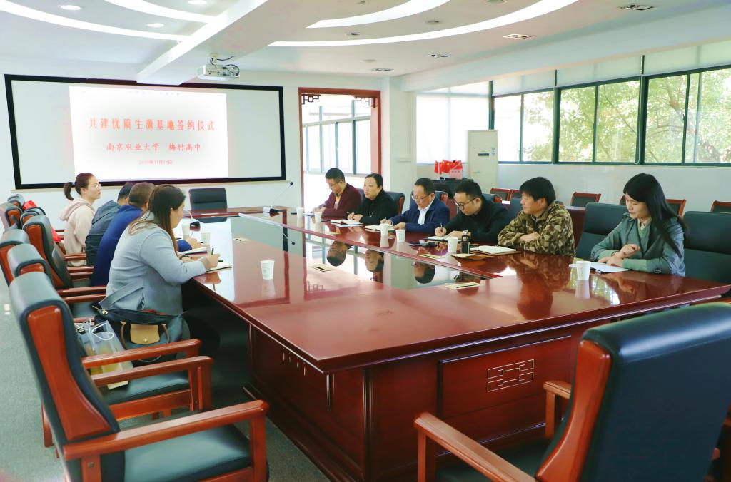 韩立新介绍了我校的历史沿革、专业设置、办学优势及学生就业等方面情况,对梅高向我校输送大批优质生源表示感谢。韩立新代表我校与梅中校长朱益民签订了共建协议,并进行了优质生源基地的授牌。