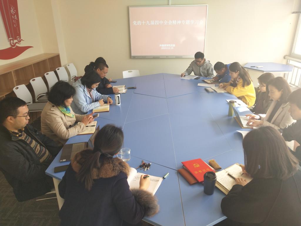 11月19日上午,冰球官网在学院党员活动室召开了专题学习会,认真学习传达党的十九届四中全会精神,紧密结合“不忘初心、牢记使命”主题教育,不断提高学院教学科研和管理服务的能力水平。院党委委员、党支部书记参加了会议。院党委副书记韩立新同志主持会议。