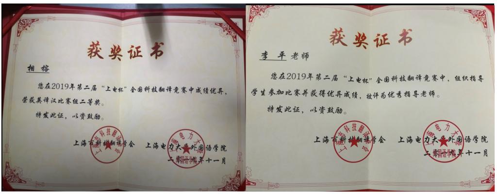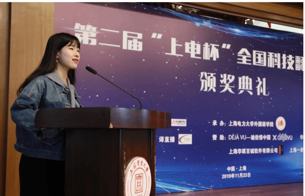 近期,由上海市科技翻译协会主办,上海电力大学mg冰球突破试玩承办,试译宝、译直播协办的第二届“上电杯”全国科技翻译竞赛落幕,冰球官网英语系本科三年级学生相榕获得英译汉组二等奖,MTI研究生周游获得三等奖。11月23日,相榕同学应邀出席了在上海电力大学举行的颁奖典礼。