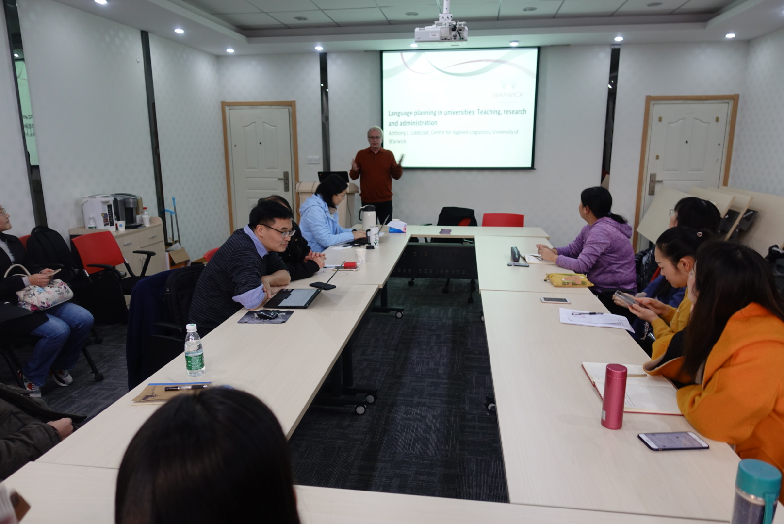 2019年12月9日,英国华威大学Anthony J. Liddicoat教授应邀来冰球官网作题为“大学语言政策与规划:教学、研究与管理”的主题报告。本次讲座在卫岗校区教学楼A310举办,由mg冰球突破试玩曹新宇副院长主持,mg冰球突破试玩部分中青年骨干教师和研究生参加。