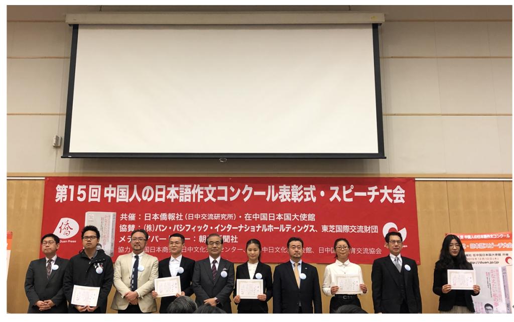 本次大赛共收到来自全国208所高校共计4359篇参赛作品,经过相关专家长达半年的严格评审,我校日语专业研究生刘伟婷荣获二等奖(指导老师:李红、仙翔太)、本科生乐伊凡(指导老师:仙翔太)、李羽鹏(指导老师:卢冬丽、仙翔太)、张栩(指导老师:小柳圭)三名同学等荣获佳作奖。同时,外院李红、仙翔太老师获“优秀作文指导教师奖”。据悉,获奖作文被收录于《东京奥运会,我想实现的梦想》一书,并于11月已在日本出版发行。