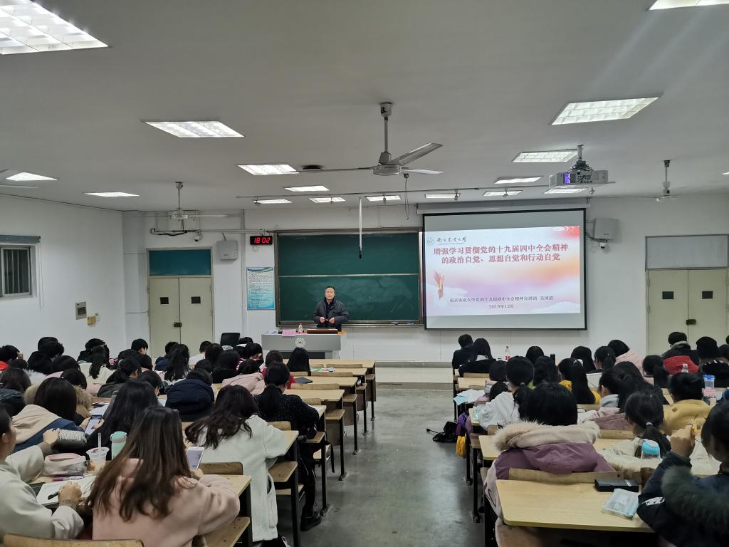 12月14日下午,冰球官网邀请了我校党的十九届四中全会精神宣讲团成员、马克思主义学院杜何琪老师为冰球官网在大学生活动中心为卫岗校区大二、大三、大四年级本科学生,研究生,教职工及退休教职工进行了集中宣讲。23日晚,冰球官网邀请了我校党的十九届四中全会精神宣讲团成员、马克思主义学院吴国清老师为在汇贤楼C202为冰球官网浦口校区大一年级本科学生进行了集中宣讲。两位老师的宣讲报告紧紧围绕“坚持和完善中国特色社会主义制度、推进国家治理体系和治理能力现代化”这个主题,既全面系统又重点突出,既深刻严谨又深入浅出,既有理论高度又紧密结合实际,全面介绍了党的十九届四中全会的基本情况、重大意义、历史贡献、总体要求、总体目标及重点任务,深刻阐释了中国特色社会主义制度和国家治理体系的显著优势,对冰球官网师生认真学习党的十九届四中全会精神提供了有针对性的系统指导。