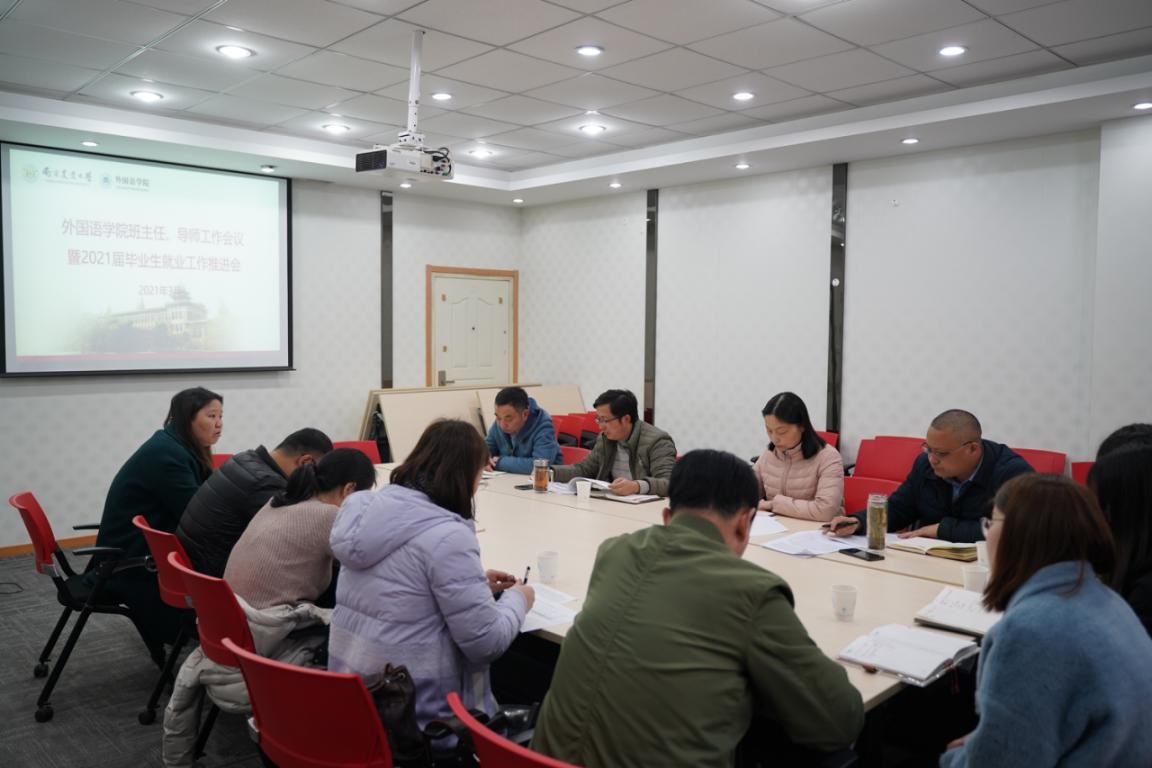 2021年3月18日下午,外国语班主任、导师工作会议暨2021届毕业生就业工作推进会于教学楼A310召开。mg冰球突破试玩党委书记朱筱玉、院长裴正薇、党委副书记韩立新、副院长游衣明、研究生导师和2021届毕业生班主任以及学院辅导员参加了本次会议。