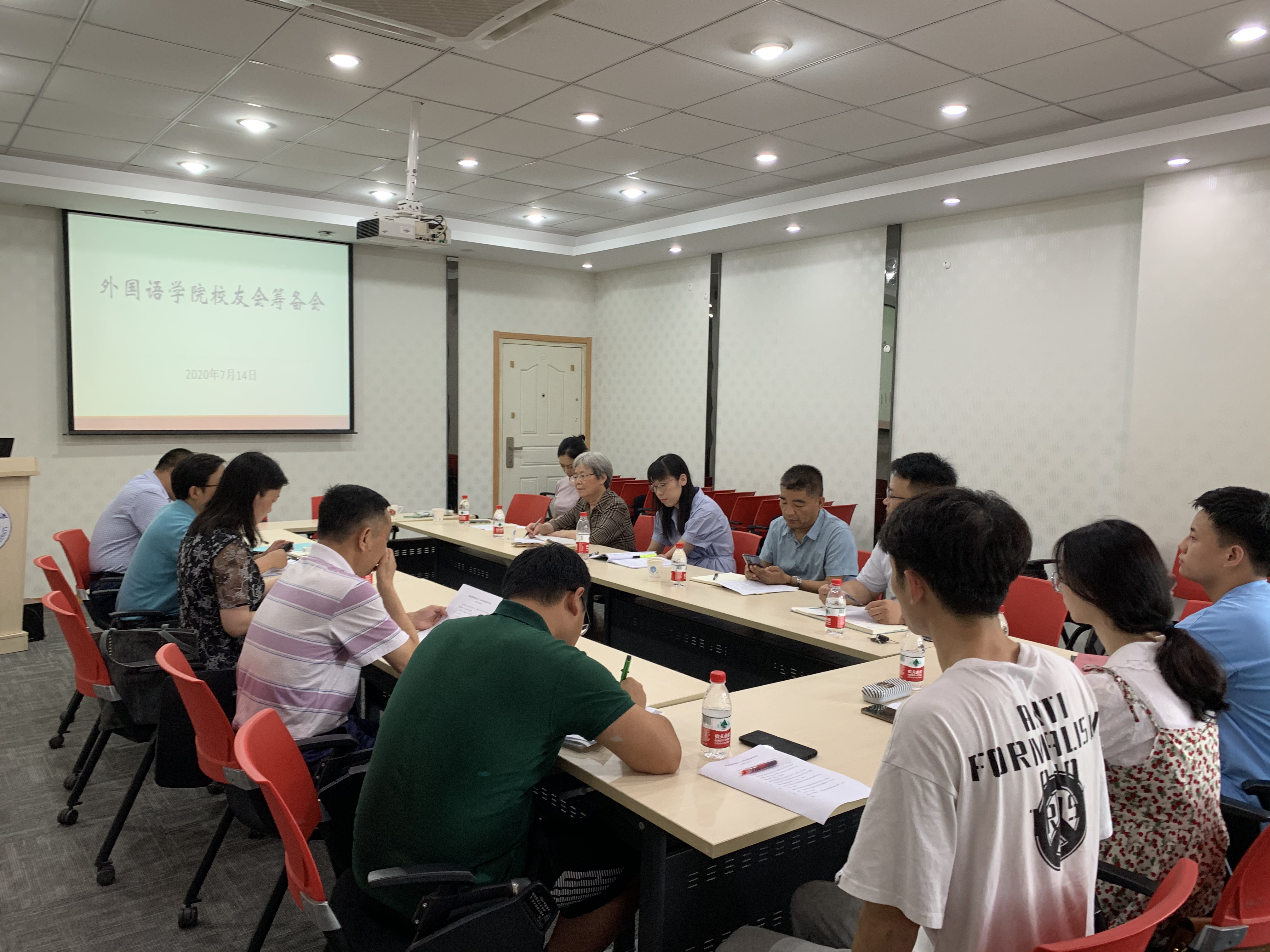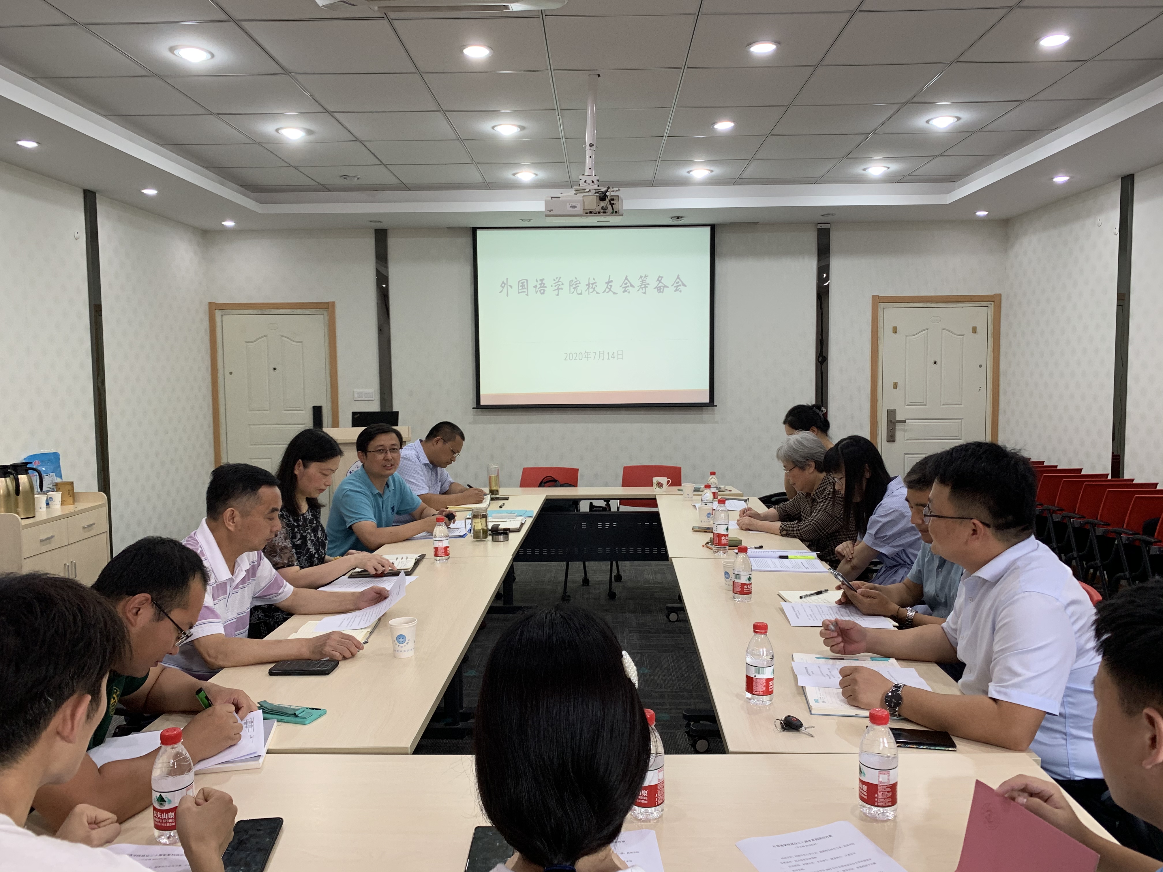 为了全面凝聚校友力量,增强校友沟通交流,促进校友资源整合,mg冰球突破试玩在校友总会指导和支持下,于7月14日上午在综合楼A310召开了外语行业校友会第一次筹备会。我校校友总会副秘书长狄传华、学院班子全体成员、院友代表食品科技学院党委副书记邵士昌、退休教师代表邓昭春、系部主任代表以及校友会筹备工作组成员参加了会议,会议由学院党委书记朱筱玉主持。