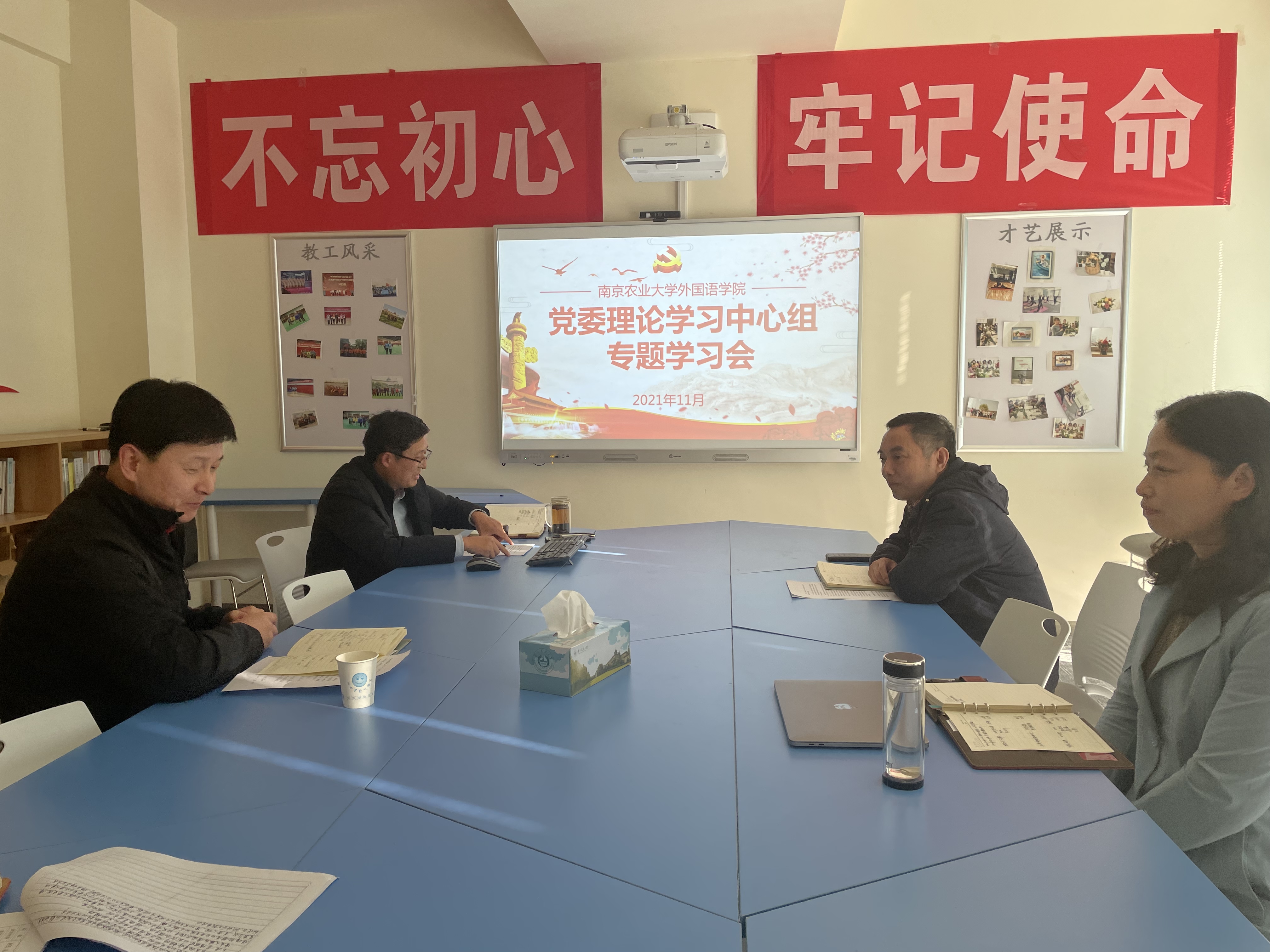 11月24日下午,冰球官网党委理论学习中心组在教学楼A322会议室召开专题学习会,学院领导班子全体成员参加了学习会,会议由院党委书记朱筱玉主持。