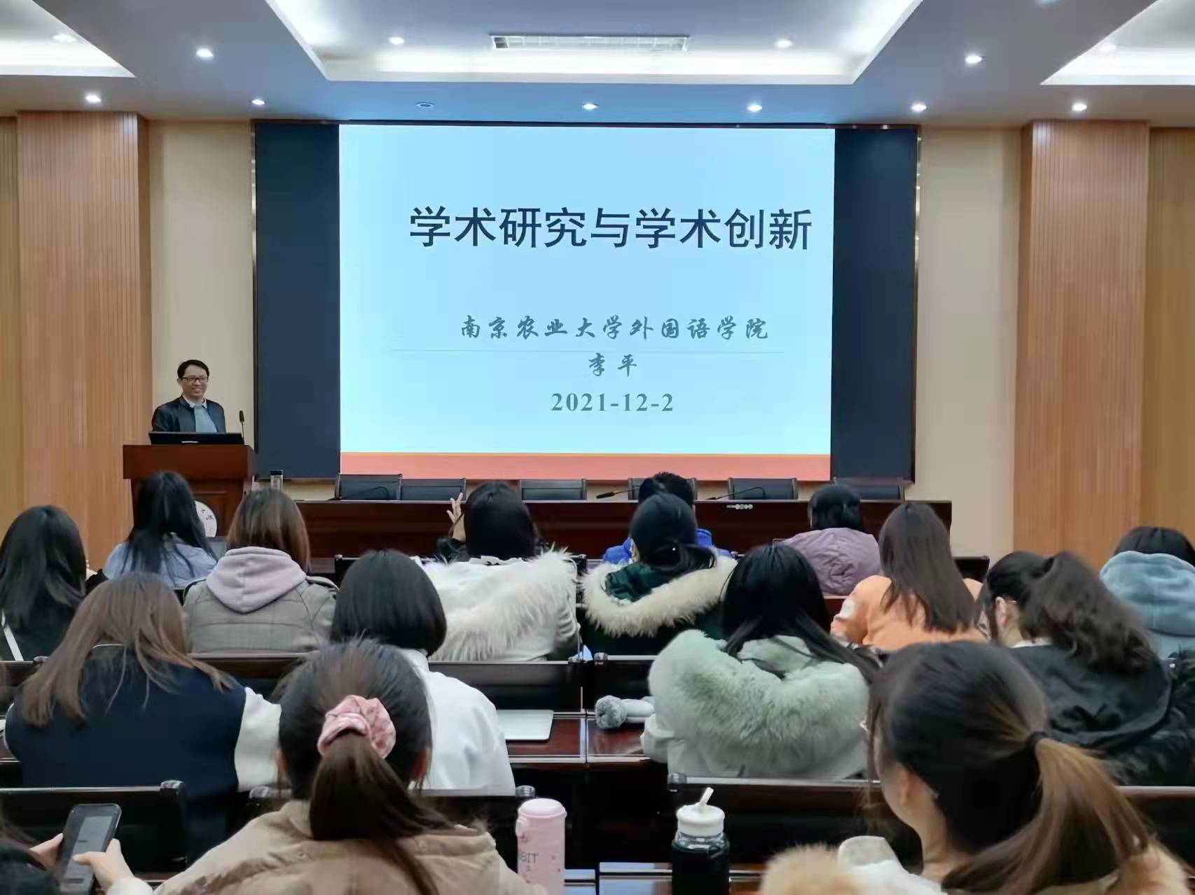 为进一步提高2021级研究生的学术思维能力和学术研究兴趣,12月3日晚,冰球官网学生办邀请英语系主任李平教授围绕学术思维与学术研究在教学楼七楼报告厅作专题辅导报告。冰球官网党委副书记韩立新、研究生兼职辅导员邓丽霞、2021级学术和专业硕士研究生参加了本次活动。