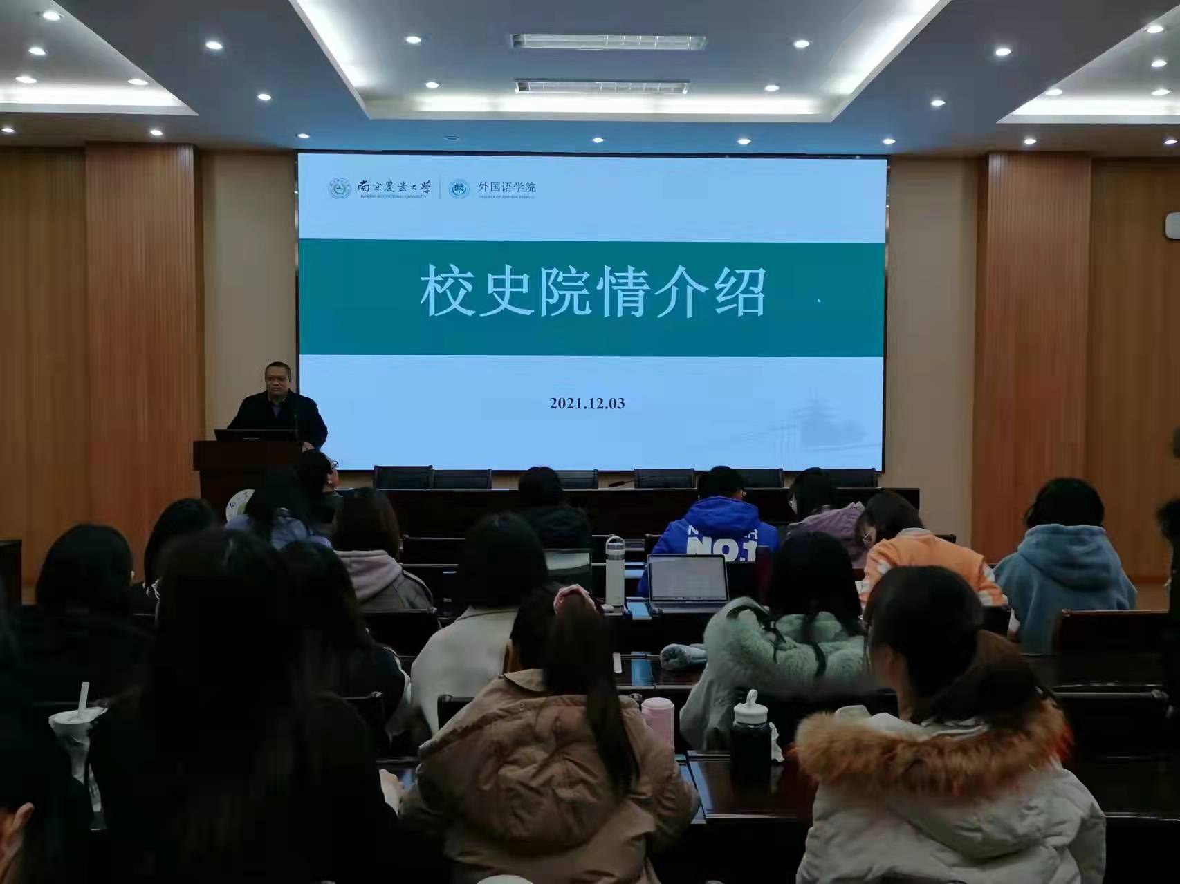 辅导报告由韩立新主持。报告开始前,他向2021级研究生介绍了学校和学院的基本情况,激励大家树立学术思维,提高学术本领,加强学术锻炼,提高学术能力,努力把自己塑造成为新时代的优秀研究生。
