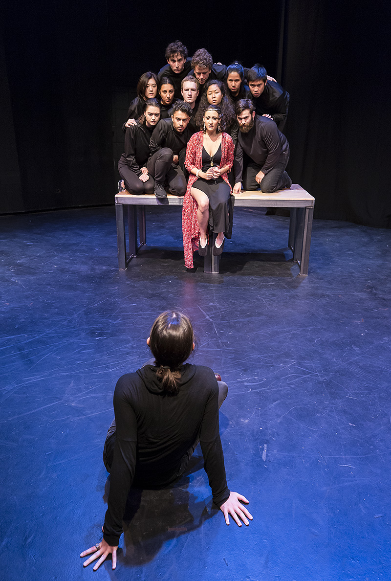 在道具的使用上艾普尔教授团队也令人耳目一新。《哈姆莱特》一剧中,纸片与小矮桌拼合了出神入化的一物多用的舞台表现效果,与不同场景的氛围、人物情感的展示、剧情的发展,都无缝对接,契合度与表现力皆给观众留下了深刻的印象。在《麦克白》一剧的编排中,棍杖的使用同样具有新意,构成了将士的阵型,烘托了麦克白弑君篡位的野心,聚焦了深夜暗杀的血色现场。背景的暗黑与前景的深红,使“麦克白谋杀了睡眠”这一战栗不已的忏悔之言绘声绘色,直击观众的视听。莎士比亚戏剧语言之力透纸背的表现力,通过艾普尔教授的团队演绎,得到了最直观的展示,在创新的同时高度还原了莎剧的巨大魅力,而创新的设计又使四百年前的经典巨作焕发了年轻的生命力。