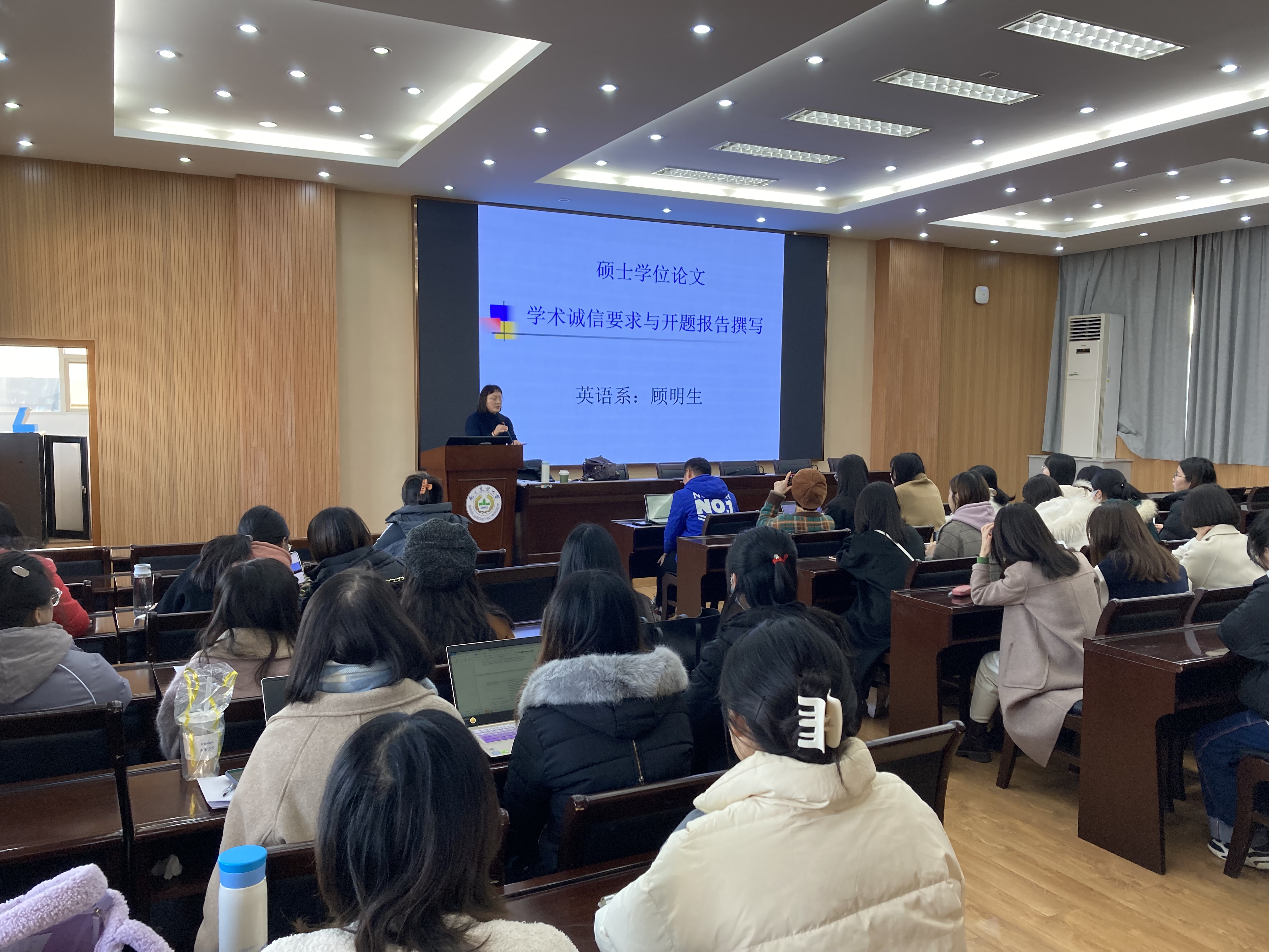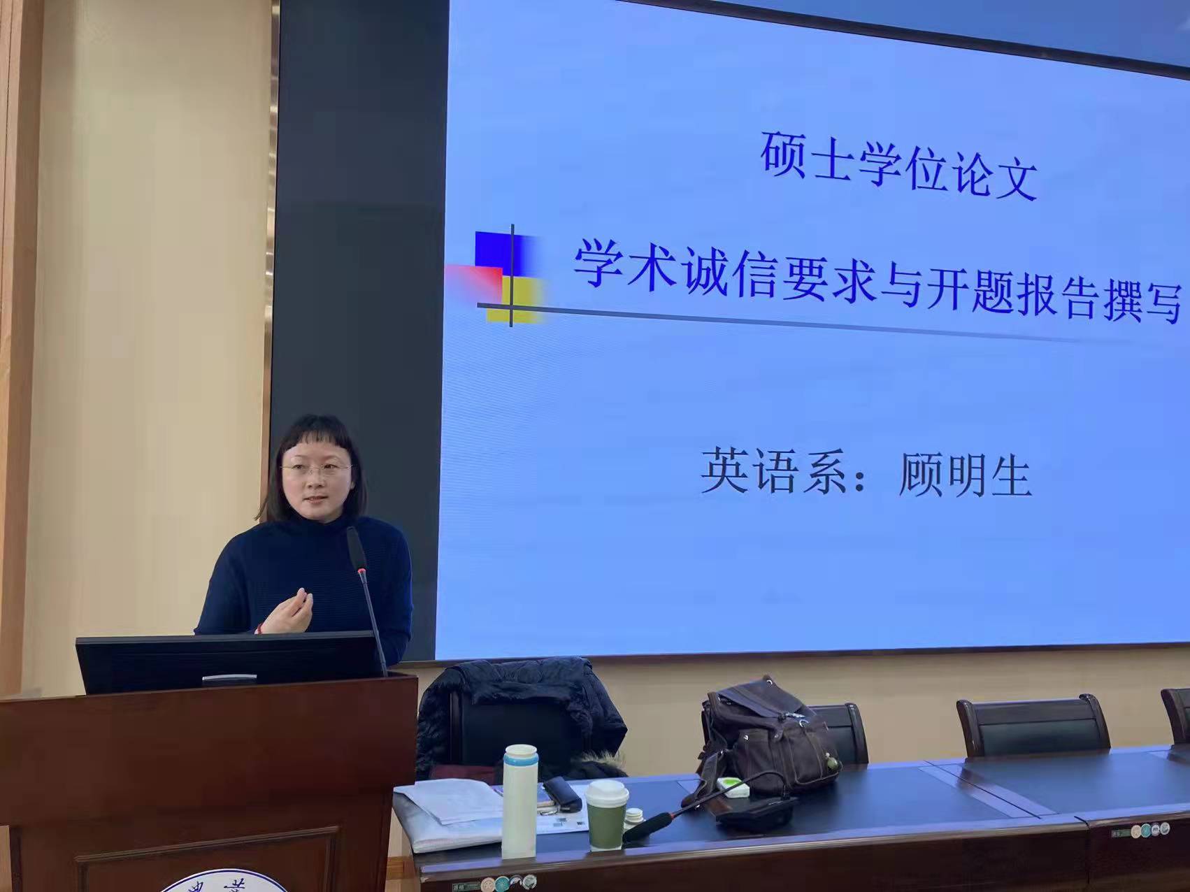 2021年12月3日下午,冰球官网顾明生副教授应邀在教学楼七楼报告厅为全院英语语言文学方向的研究生作了一场题为“学术诚信要求与开题报告撰写”的辅导讲座。