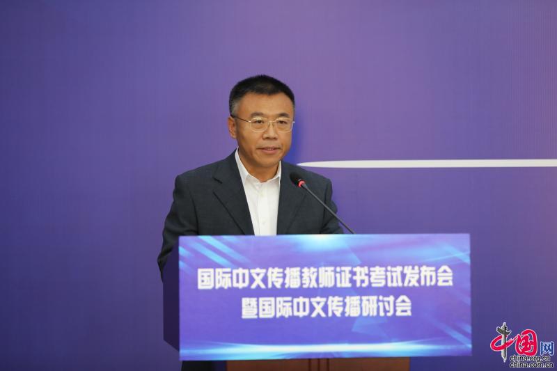 中国外文局教育培训中心主任范奎耀和对外经济贸易大学党委副书记文君分别对国际中文传播教师证书考试,以及考试委员会、评审专家委员会、教材编写委员会的建设与人员构成等情况进行了发布和介绍。