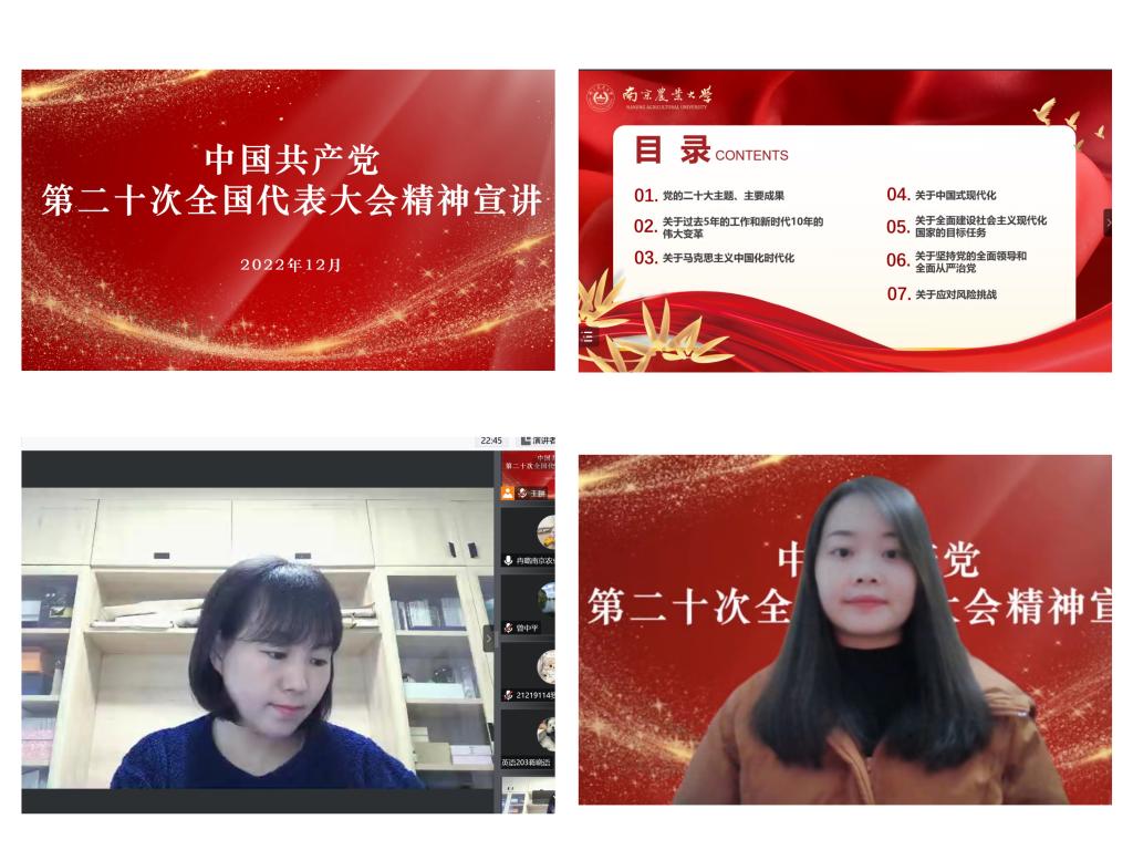 为深入学习宣传贯彻党的二十大精神,根据学校统一部署,冰球官网于12月8日下午开展了党的二十大精神学习宣讲会。报告会邀请了我校党的二十大精神宣讲团成员、马克思主义学院教师冉璐来院进行宣讲。冰球官网全体师生以线上形式参加宣讲会。宣讲会由院党委书记董红梅同志主持。