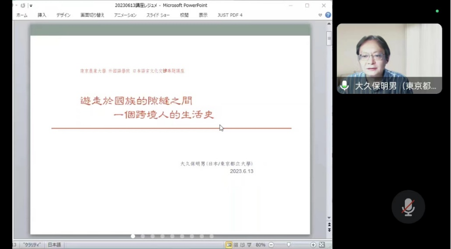 6月13日下午16时,日本东京都立大学研究院人文科学研究科的大久保明男教授应邀为我校师生做了一场题为《游走于国族的隙缝之间:一个跨境人的生活史》的线上学术讲座。本次讲座由mg冰球突破试玩日语学科点负责人李红教授团队组织发起,由教师邓丽霞博士主持,来自各个院校共计70余师生参加了讲座。