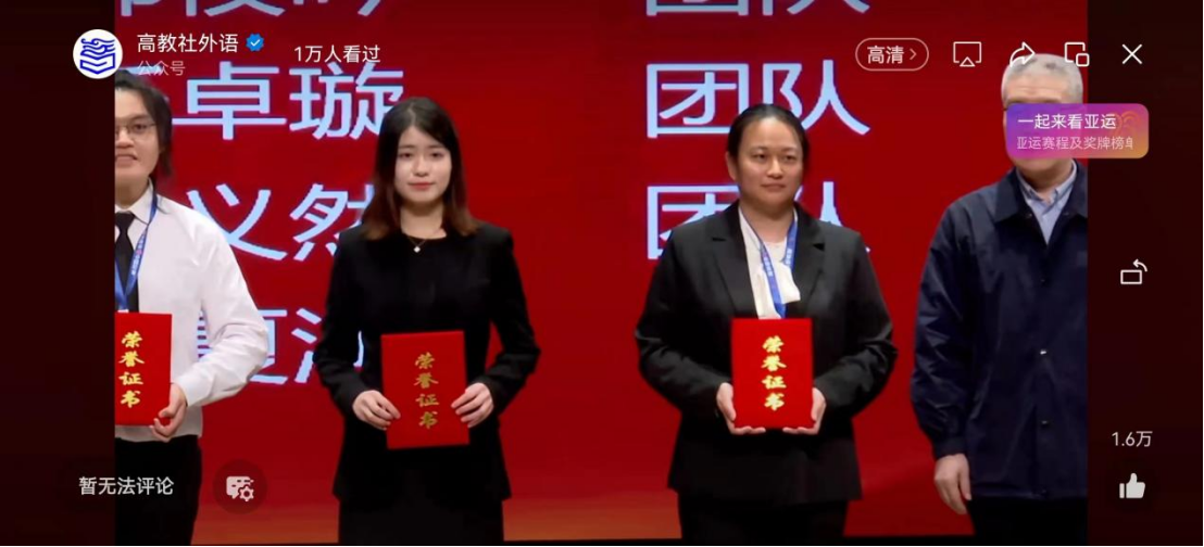 日前,由全国高等学校大学外语教学研究会指导,南京大学主办,高等教育出版社协办的第二届“高教社杯”大学生“用外语讲好中国故事”优秀短视频全国现场交流活动在南京大学苏州校区举办。由我校mg冰球突破试玩本科生任卓璇、厉淑涵、伍佳怡、史新纪和经济管理学院本科生张力权、刘智婷合作完成的《织锦人生》(Weaving Life of Nanjing Brocade)斩获全国特等奖,创造了江苏省高校选手在此次活动中的最佳成绩。