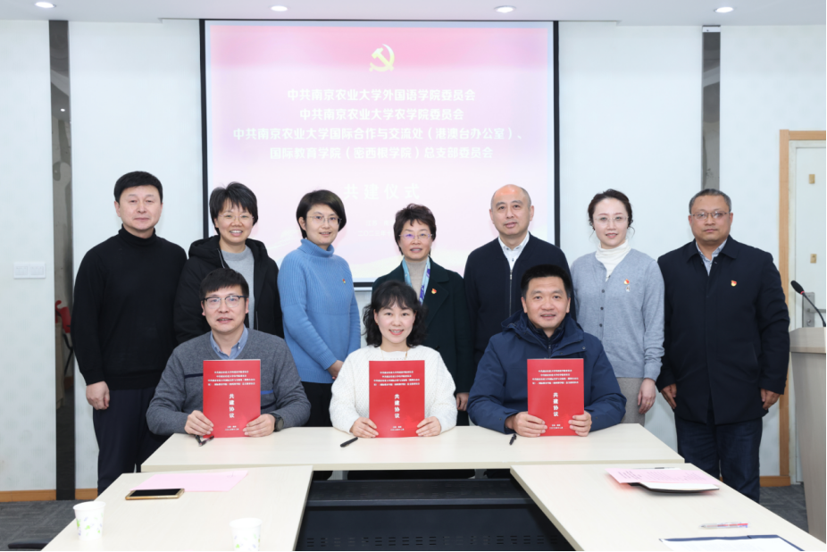 农学院党委书记庄森同志、国际合作与交流处(港澳台办公室)/国际教育学院(密西根学院)党总支书记陈杰同志、mg冰球突破试玩党委书记董红梅同志代表三个单位签署了党建共建协议。随后,陈杰、庄森、董红梅先后介绍了各自单位的党建工作情况,并对接下来的党建共建作了深入的交流研讨。
