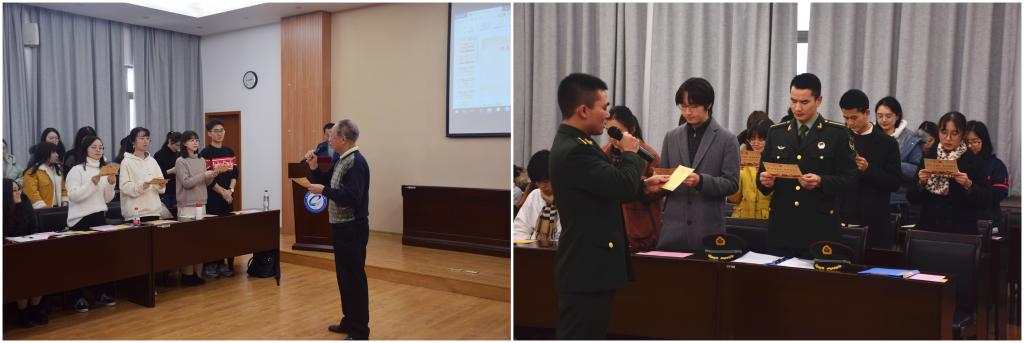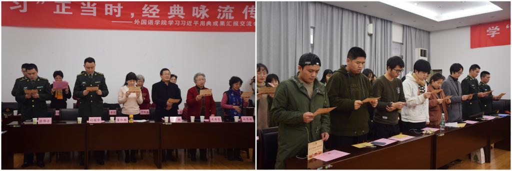 之后,我校退休教师贾思明、林秀清、关工委的孔育红和陆工大的刘薪分别带领各个支部的学生党员重温经典,诵读经典,将每个环节的汇报交流推向高潮。