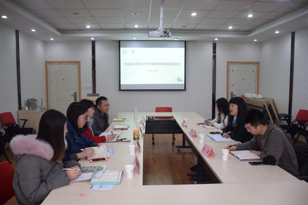 董红梅对浙江理工大学外国院学院一行的到来表示欢迎,并简要介绍了学院概况、专业设置、师生人员等情况。夏青对浙江理工大学mg冰球突破试玩的学院情况做了简要介绍。